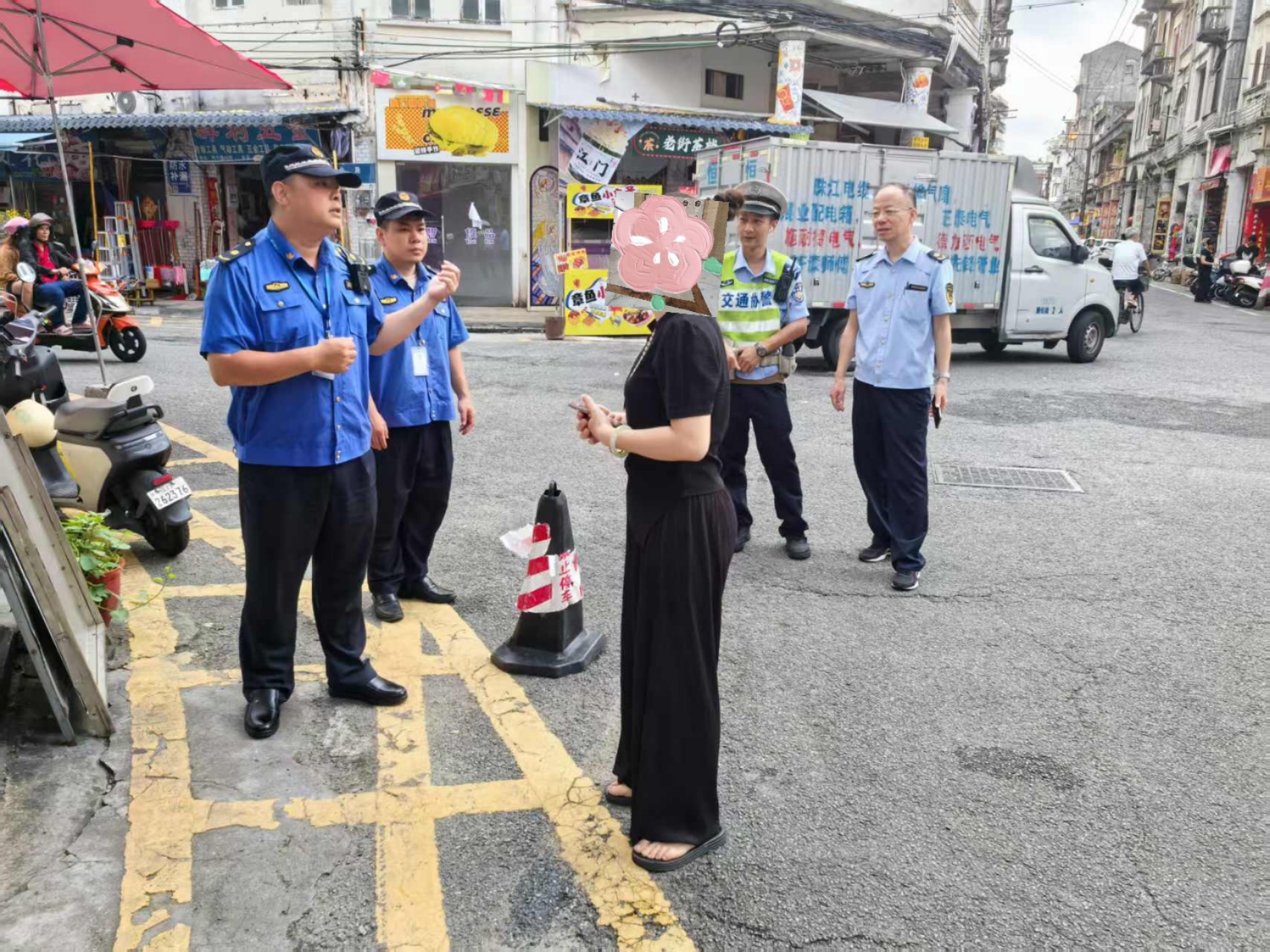 行動(dòng)期間,綜合巡查整治組對(duì)取景地周邊區(qū)域進(jìn)行拉網(wǎng)式排查,全面清理“狂飆”一帶無牌無證經(jīng)營(yíng)行為,特別是整治占用公共用地經(jīng)營(yíng)或擺放商品、物料等行為,嚴(yán)厲打擊銷售假冒偽劣商品、過期變質(zhì)商品,擅自占用道路違規(guī)經(jīng)營(yíng)的機(jī)動(dòng)車輛、改裝流動(dòng)攤販車和其他違反交通秩序等,建立詳細(xì)臺(tái)賬,引導(dǎo)商戶對(duì)照要求限期整改。