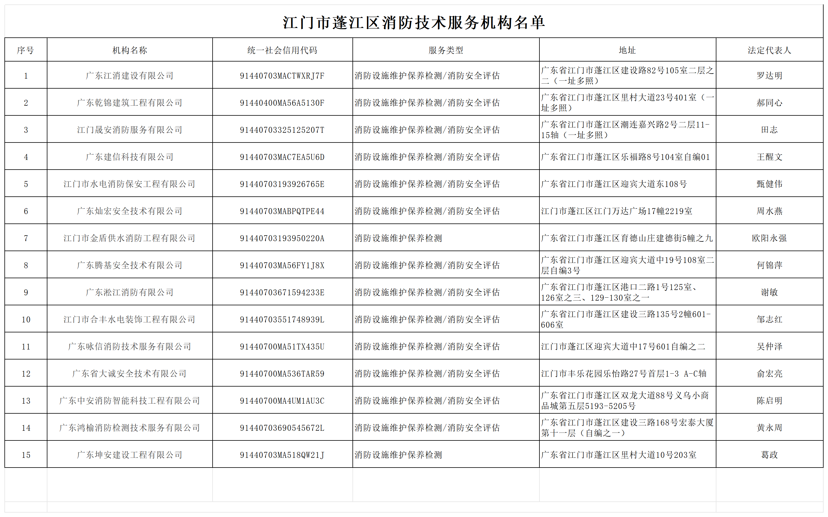 關(guān)于江門市蓬江區(qū)消防技術(shù)服務(wù)機(jī)構(gòu)名單及執(zhí)業(yè)信息查詢渠道的公示