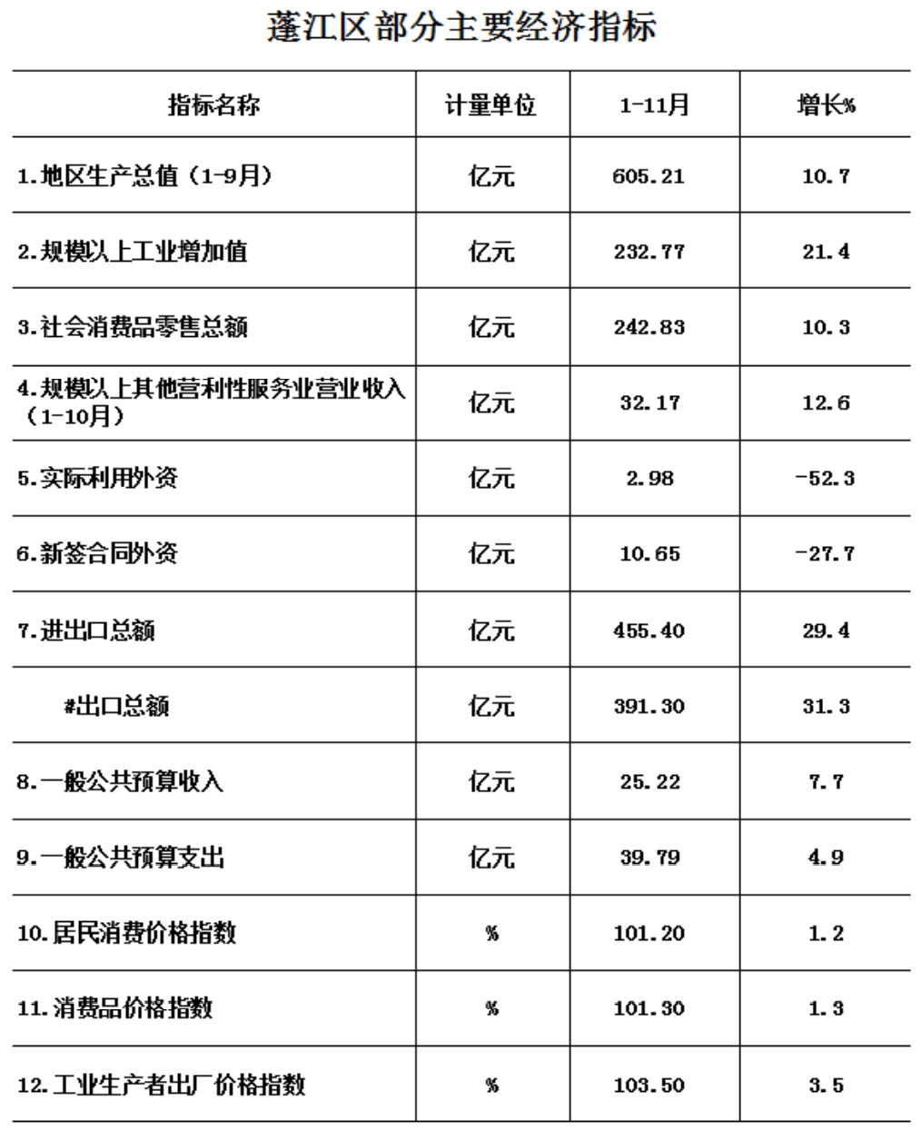 2021年1-11月蓬江區(qū)經(jīng)濟運行簡況