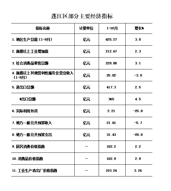 2022年1-10月蓬江區(qū)經(jīng)濟運行簡況