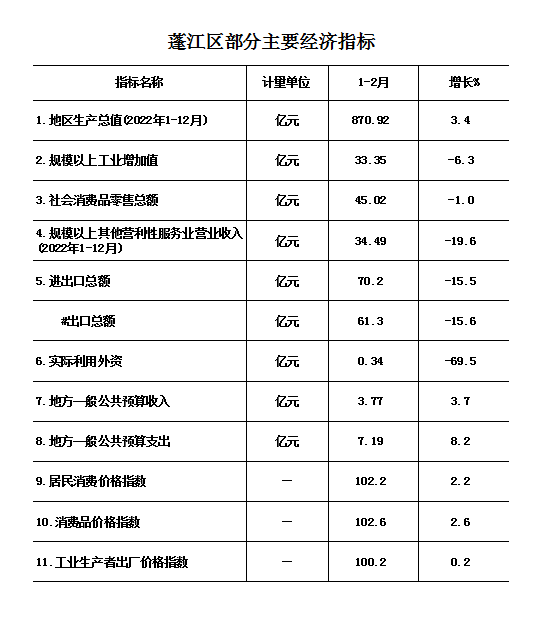 2023年1-2月蓬江區(qū)經(jīng)濟運行簡況