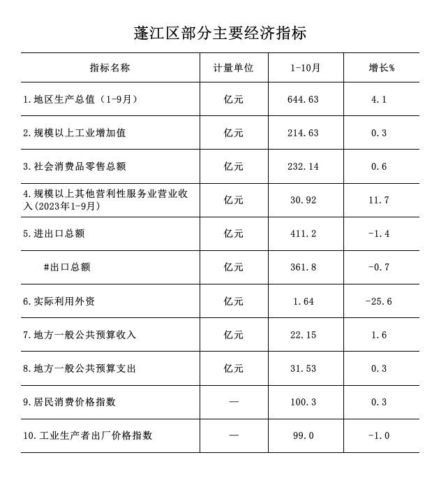 2023年1-10月蓬江區(qū)經濟運行簡況