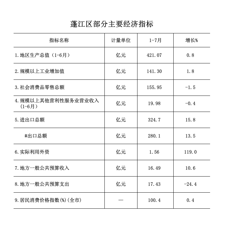 2024年1-7月蓬江區(qū)經(jīng)濟運行簡況
