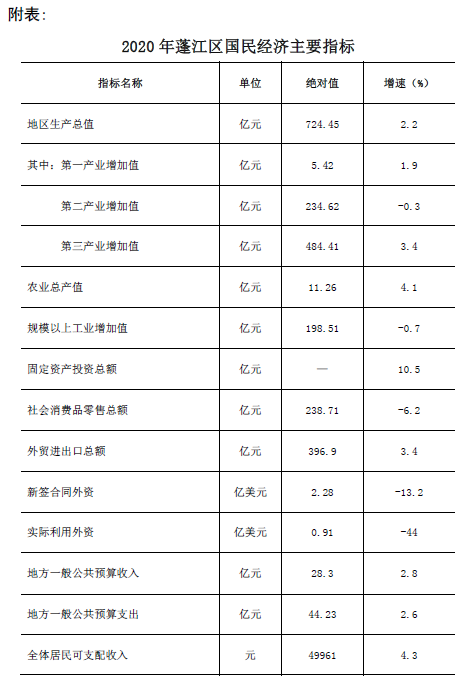 2020年江門市蓬江區(qū)國(guó)民經(jīng)濟(jì)和社會(huì)發(fā)展統(tǒng)計(jì)公報(bào)
