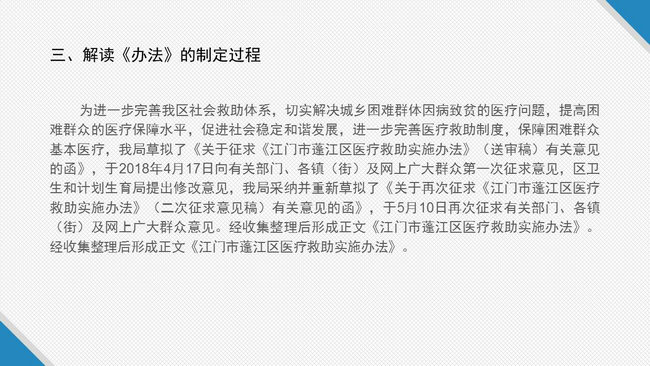 政策文件鏈接:關(guān)于印發(fā)江門市蓬江區(qū)醫(yī)療救助實(shí)施辦法的通知