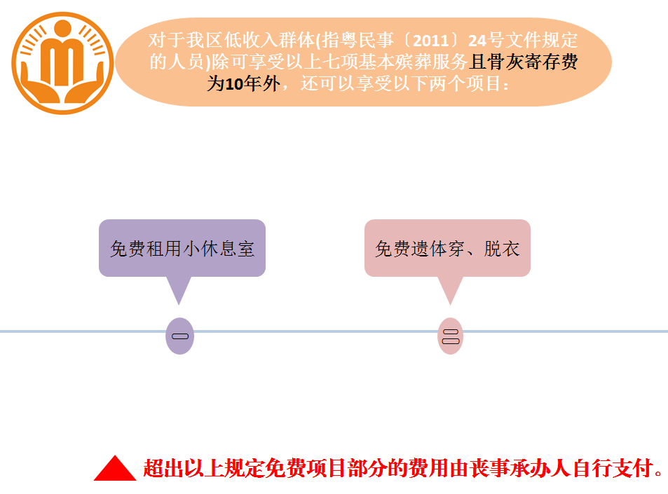 (二)對于我區(qū)低收入群體(指粵民事〔2011〕24號文件規(guī)定的人員)可享受項目如下: