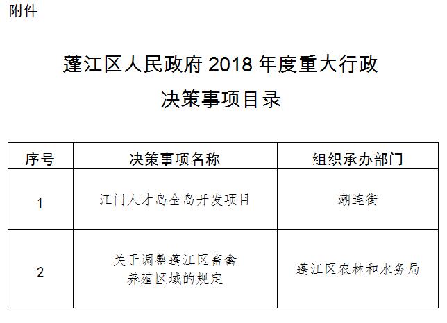 附件:蓬江區(qū)人民政府2018年度重大行政決策事項目錄