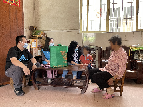 鎮(zhèn)公共服務辦、鎮(zhèn)婦聯帶領村干部及“雙百”社工上門慰問殘疾兒童