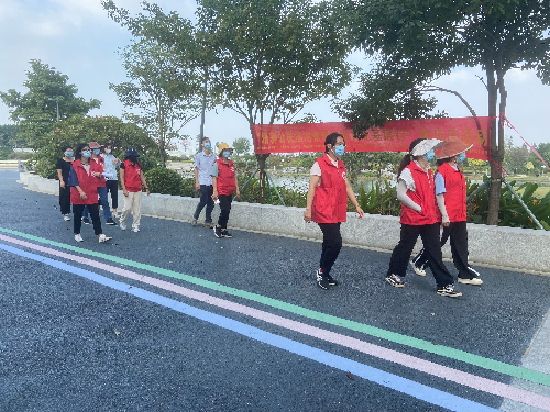 11月18日下午,參加健步走志愿服務(wù)活動的職工們在指示牌的指引下,從起點出發(fā),在潮頭中央公園的秋日微風(fēng)中,職工們一邊欣賞美景,一邊感受運動帶來的快樂。