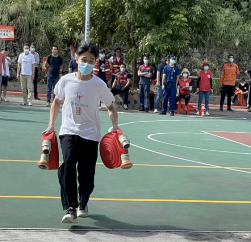 比武場(chǎng)上顯身手,以賽促學(xué)練精兵。此次消防安全勞動(dòng)技能競(jìng)賽從實(shí)際出發(fā),分成消防安全知識(shí)競(jìng)賽和消防技能實(shí)操競(jìng)賽兩個(gè)項(xiàng)目進(jìn)行。消防安全知識(shí)競(jìng)賽采取搶答方式進(jìn)行,各參賽隊(duì)員反應(yīng)迅速、踴躍搶答、從容作答,各隊(duì)比分交替上升,你追我趕、互不相讓。消防技能實(shí)操競(jìng)賽采取實(shí)操方式進(jìn)行,逃生奔跑、原地穿著消防服裝、搬運(yùn)重物折返跑、一人兩盤水帶連接4個(gè)項(xiàng)目,各參賽企業(yè)隊(duì)伍按照順序依次進(jìn)行實(shí)操演示,人員互相協(xié)作配合,將“精、快、穩(wěn)”的技能水平展現(xiàn)得淋漓盡致。