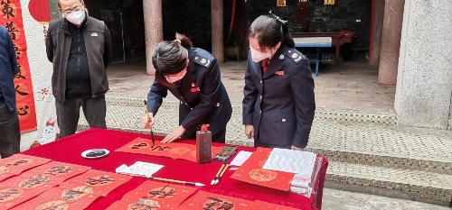 稅務(wù)春聯(lián)到萬(wàn)家”送揮春活動(dòng),組織稅務(wù)部門書法愛好者深入“廣東省革命老區(qū)”——荷塘鎮(zhèn)南村村,送上稅務(wù)人的濃濃新春祝福。