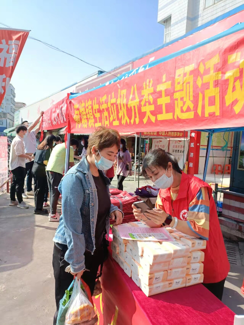 ▲志愿者正在開展垃圾分類宣傳進(jìn)社區(qū)活動,進(jìn)一步增加垃圾分類的宣傳面和知曉率。