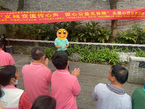 隨后,志愿者與殘疾人們圍坐在涼亭里,大家面對面分享著志愿心得,“志愿者一個光輝而又閃亮的名字,我能夠成為一名光榮的志愿者而感到光榮與自豪,同時努力踐行社會主義核心,弘揚“奉獻,互助,進步”的志愿者精神,在社會上幫助有需要的人,贈人玫瑰,手留余香,幫助別人,而最終收獲快樂的是自己?!弊蠲乐驹刚哝弦炭犊ぐ旱囊环?,感染了在場人員,大家對志愿活動及志愿者充滿了敬意與向往。交流過程中,社區(qū)殘疾人洪先生說:“很感謝團鎮(zhèn)委能組織這次的交流活動,從前我也是因為身體殘疾一度意志消沉,但在社區(qū)志愿者的上門關(guān)心與開導下,我慢慢走出陰霾,現(xiàn)在也有自己的工作可以自食其力,日后我更希望能加入志愿者的大家庭,從以前那個被志愿者幫助的人轉(zhuǎn)變成能夠幫助別人的人,身體的殘疾并不能成為我們消沉的借口,相信我也能付出自己的一絲絲微薄的力量?!敝驹刚吲c殘疾人深入交流互動,雙方傳遞心聲,打破了彼此間的界限,大家對志愿者的認知更清晰、感悟更深刻,活動現(xiàn)場一片歡聲笑語。