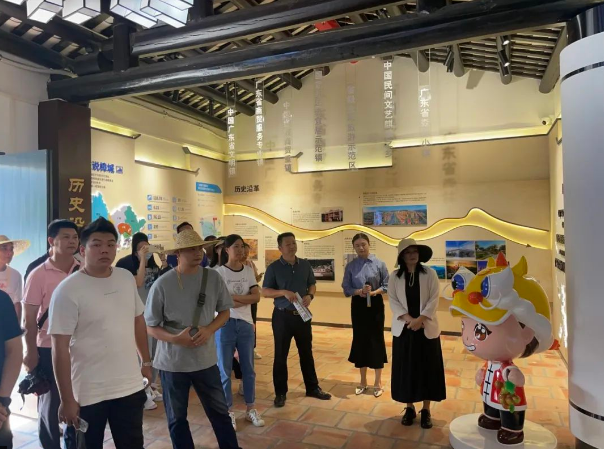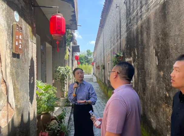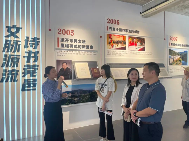 在官倉(cāng)社區(qū)黨群服務(wù)中心,調(diào)研組觀看了“百千萬(wàn)工程”專題片,通過(guò)影像資料初步了解了社區(qū)在經(jīng)濟(jì)發(fā)展、鄉(xiāng)村治理、人居環(huán)境整治等方面的進(jìn)展與成效。在工作人員的帶領(lǐng)下,調(diào)研組實(shí)地參觀了該社區(qū)結(jié)合客家歷史文化、樟木頭“中國(guó)作家第一村”等元素,打造作家村實(shí)體部落的建設(shè)成效,學(xué)習(xí)社區(qū)在保留原有建筑風(fēng)貌的基礎(chǔ)上,合理規(guī)劃藝術(shù)創(chuàng)作區(qū)、休閑文旅區(qū)、公共文化展演區(qū)、交流共享區(qū)等特色區(qū)域,推進(jìn)作家書(shū)院、駐創(chuàng)基地、服務(wù)中心等配套設(shè)施同步建設(shè),助力文化建設(shè)與鄉(xiāng)村振興雙向賦能的經(jīng)驗(yàn)做法。
