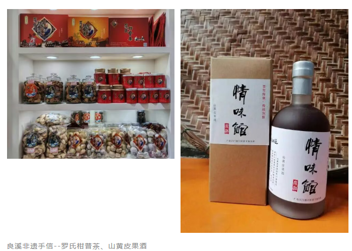 更值得一提的還有良溪的非遺手信羅氏柑普茶和山黃皮果酒。羅氏柑普茶始創(chuàng)于清道光年間,距今已有近兩百年歷史,茶湯入口甘醇香甜,是果香與茶香碰撞的奇妙化學(xué)反應(yīng)。同樣,山黃皮果酒酒味道獨(dú)特,果香濃郁,有很好的藥用價(jià)值。良溪非遺手信獨(dú)具魅力,是良溪人招待貴客、敬送禮品的首要選擇。